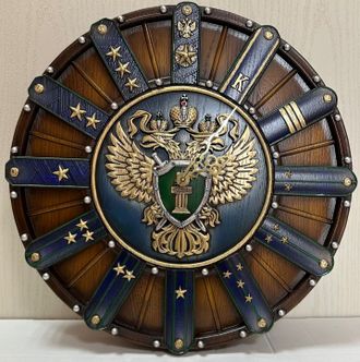 Часы из дуба, сделанные нашими мастерами, отвечают всем необходимым требованиям. Оригинальные настенные часы классической формы, изготовлены в строгой цветовой гамме. В центре циферблата на синем фоне вырезан герб России. Циферблат, сделанный в виде погон, указывают на основные ступени карьеры сотрудника юстиции.