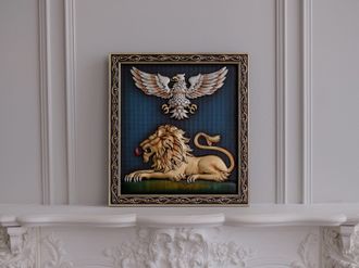 Материал: дуб, сусальное золото, поталь, камни Swarovski.