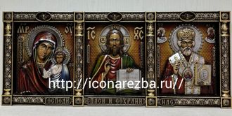 Триптих Икона Казанской Богородицы, Икона Господь Вседержитель, Икона Николай Чудотворец