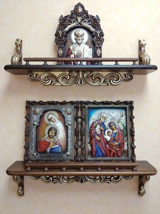 Полки для икон — это не просто предмет мебели, а важное место в доме, предназначенное для хранения святых образов и создания особого духовного пространства. Они служат для организации и благоговейного размещения икон, а также других религиозных предметов, таких как лампады, свечи, богослужебные книги и святая вода.