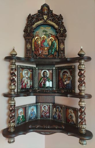 Полка для икон — это не просто предмет мебели, а важное место в доме, предназначенное для хранения святых образов и создания особого духовного пространства. Они служат для организации и благоговейного размещения икон, а также других религиозных предметов, таких как лампады, свечи, богослужебные книги и святая вода.