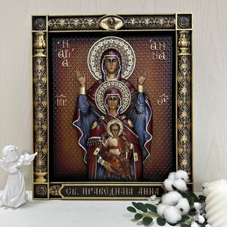 Святая Анна, мать Пресвятой Богородицы, бабушка Иисуса Христа, была младшей дочерью Матфана из Вифлеема, рода священников. Она вышла замуж за святого Иоакима из Галии. Долгое время у них не было детей, но по прошествии времени, Господь возвестил ее о ребенке. Зачатие произошло в Иерусалиме – так родилась пресвятая Дева, нареченная Марией. Анне приписывают множество чудотворных и благих дел. К концу жизни Анна приняла казнь за веру во Христа.