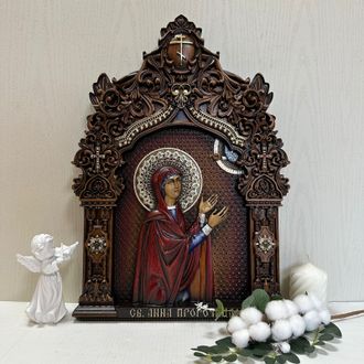 Икона Святая Анна Пророчица - резная деревянная икона, из натурального дуба. Изготавливается в нескольких размерах. Покрыта натуральными, высококачественными материалами, которые обеспечивают долговечность изделия. Икона написана по православным канонам, освящена.