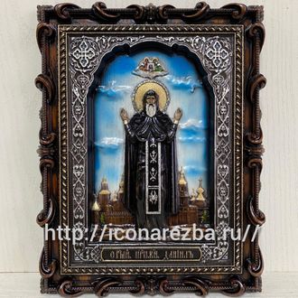 Князь Даниил родился в 1261 году. Он был четвертым сыном святого великого князя Александра Невского. В жизни св. благоверный князь Даниил отличался благочестием, кротостью и миролюбием. Был царем преславного града Московского. Князь завоевал Переяславское княжество, однако, не услаждался властолюбием, а ограждаясь верой Божией, преуспевал в строительстве храмов, дорог и мостов. Господствуя в Московских пределах, Даниил построил за Москвой-рекой Даниловский монастырь. В этом монастыре сам князь принял иноческое пострижение. Приняв схиму, князь на 42 году жизни мирно отошел в царствие иное 4 марта 1303 года. 30 августа 1652 года мощи его были названы нетленными.