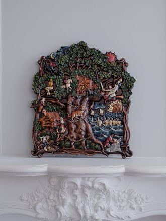 Панно лукоморье32500 руб. Размер иконы, (артикул)-500х450600х550В корзинуКупить в 1 кликПоделиться:Материал: дуб, сусальное золото, поталь, камни Swarovski.Комментарии 0 Нет комментариев Добавить комментарий