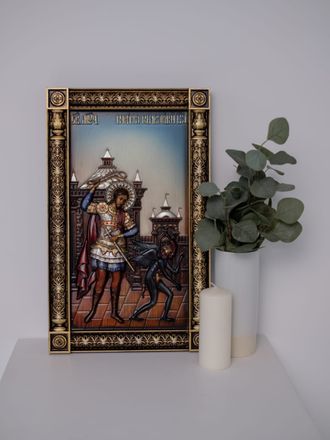 Раннехристианский святой, апокрифический великомученик, подвергшийся пыткам и принявший смерть за Христа в Константинополе; вымышленный сын римского императора Максимиана. Широко известен в христианской иконографии в мотиве побивания им беса-дьявола, соблазнявшего его принять язычество.