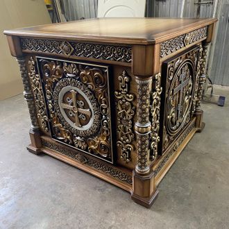 Облачение на престол 0 Размер изделия-1100х1100хх1100В корзинуКупить в 1 кликПоделиться:Материал: дуб, сусальное золото, поталь.Комментарии 0 Нет комментариев Добавить комментарий
