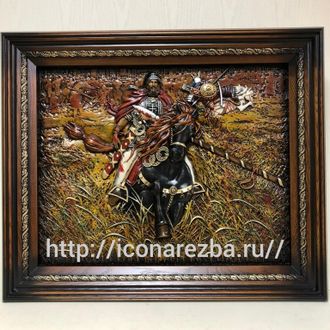 Панно Пересвет41000 руб. Предполагаемый срок поставки: 16 декабряРазмер панно-930х780670х570ЗаказатьПоделиться:Материал: дуб, краски, поталь.Комментарии 0 Нет комментариев Добавить комментарий