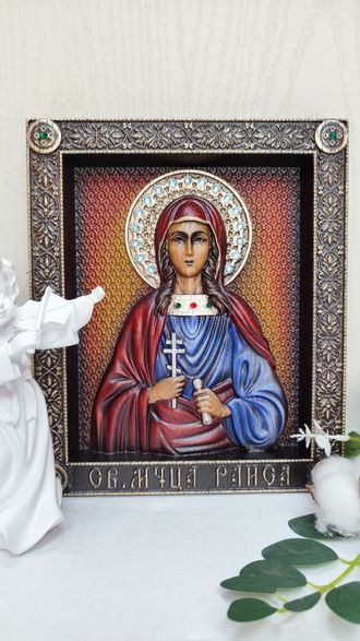 Икона Святая Раиса - резная деревянная икона, из натурального дуба. Изготавливается в нескольких размерах. Покрыта натуральными, высококачественными материалами, которые обеспечивают долговечность изделия. Икона написана по православным канонам, освящена.