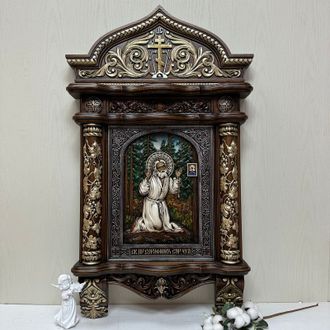 Икона "Святой Серафим Саровский"- резная деревянная икона, из натурального дуба. Изготавливается в нескольких размерах. Покрыта натуральными, высококачественными материалами, которые обеспечивают долговечность изделия. Икона написана по православным канонам, освящена.