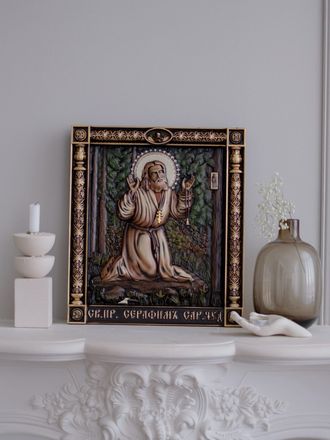 Икона на дереве с изображением Серафима Саровского станет не только хорошим подарком начинающему бизнесмену, но и верным оберегом в торговых делах, поскольку святой Серафим сам имеет купеческое происхождение. Пред его иконою молятся о поправлении дел, исцелении от духовной и телесной немощи.