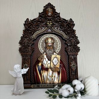 Материал: дуб, сусальное золото, поталь, камни Swarovski.