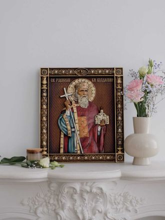 На резной иконе видим мы мудрого властителя земли русской, преодолевшего соблазны язычества и крестившего великую Русь в истинную веру. Пред образом святого Владимира молятся о духовном прозрении, об избавлении от распрей, мире в Отчизне, о спасении от различных бед и напастей, а также об исцелении от тяжких и глазных болезней.